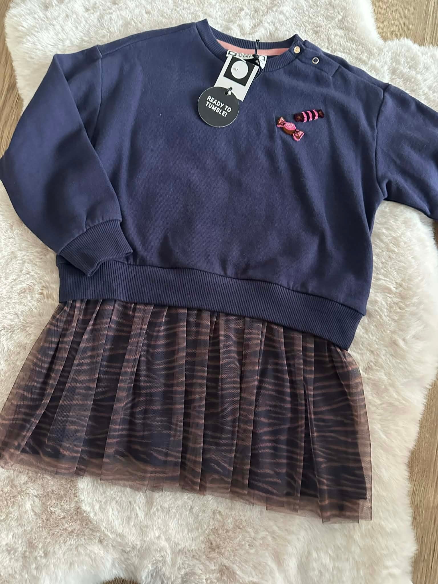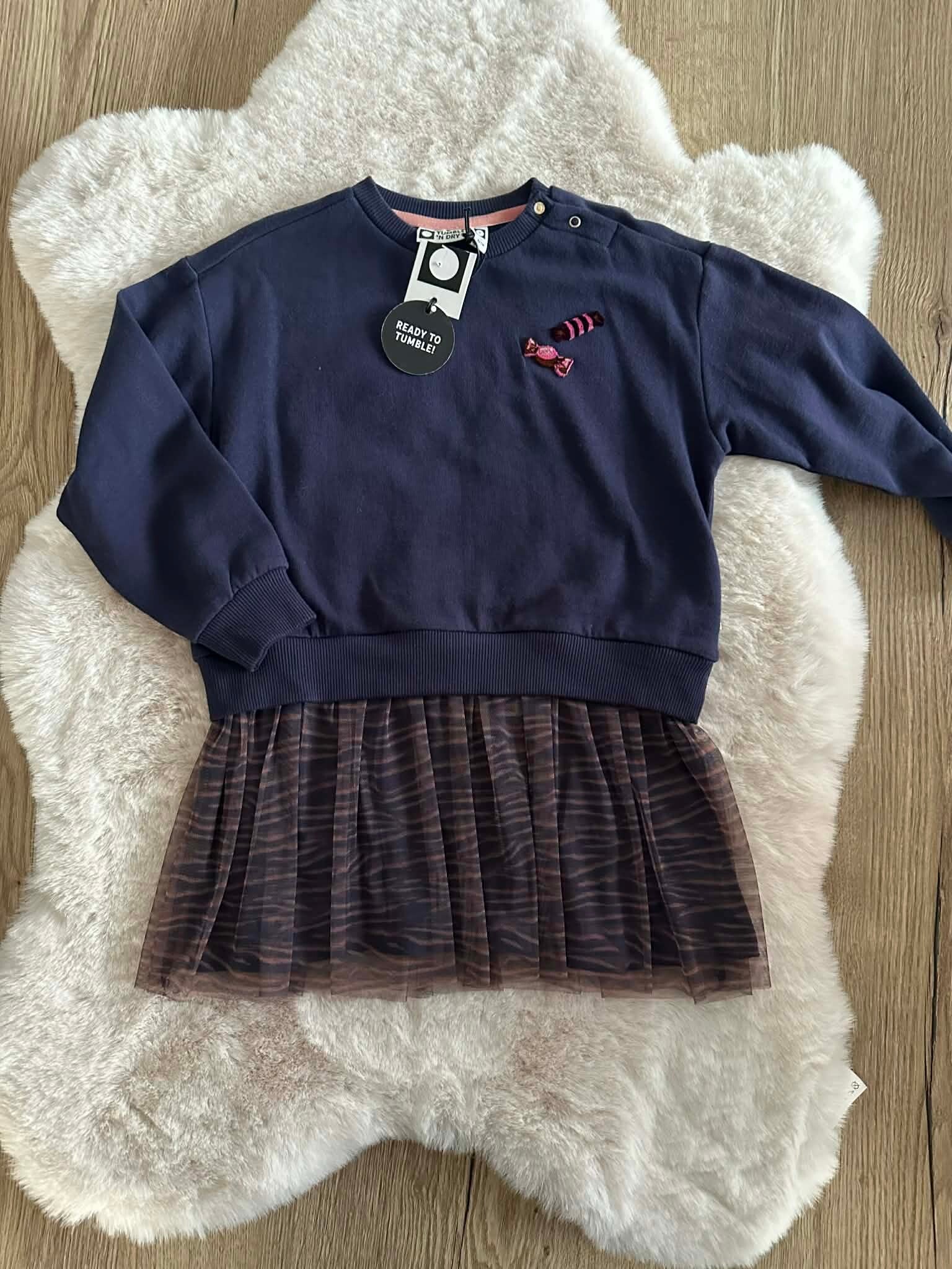 Op zoek naar een outfit die zowel stoer als girly is? Deze donkerblauwe sweaterjurk van het bekende merk Tumble 'N Dry is de ideale keuze. Dankzij de zachte materialen en het speelse ontwerp is dit een favoriet voor elke dag!