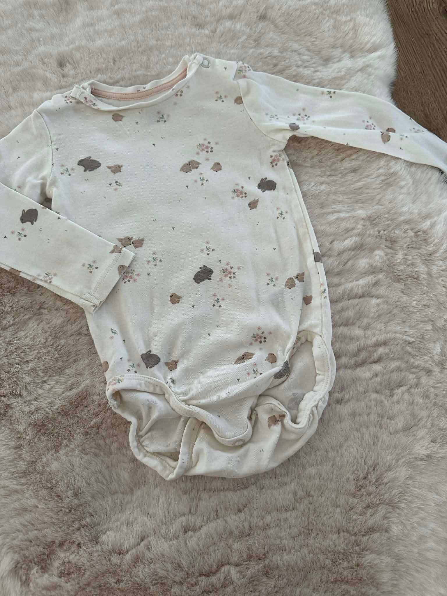 Lief Ontwerp: De romper is voorzien van een subtiele all-over print van kleine konijntjes en bloemetjes.