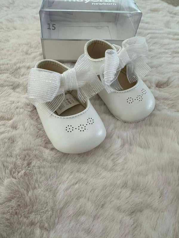 Maak de outfit van je kleintje compleet met deze luxueuze schoentjes van Mayoral. Dankzij de hoogwaardige afwerking en het oog voor detail zijn dit de ideale eerste schoentjes voor een onvergetelijke dag.