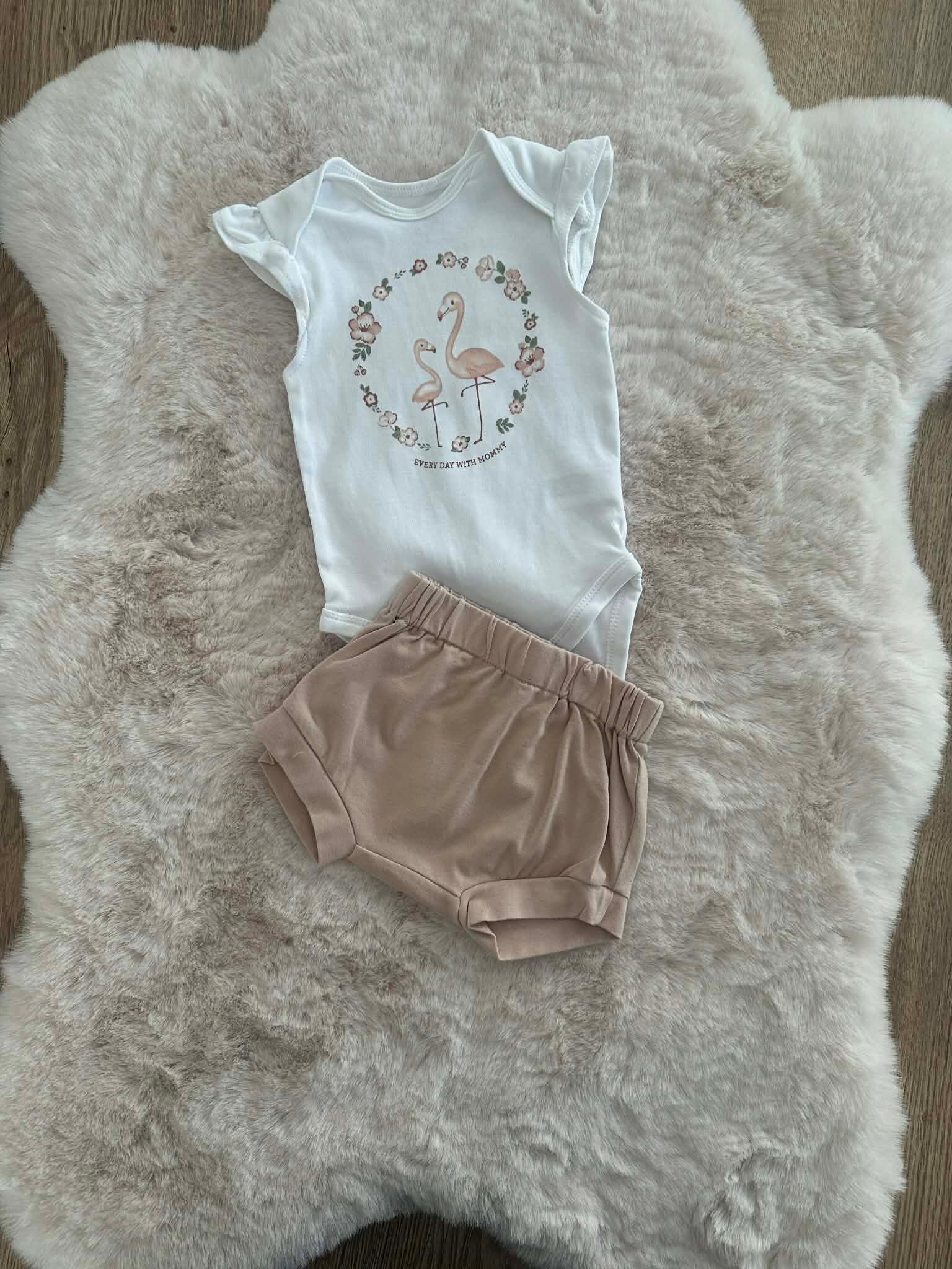 Kleur: Wit shirtje met een oudroze short