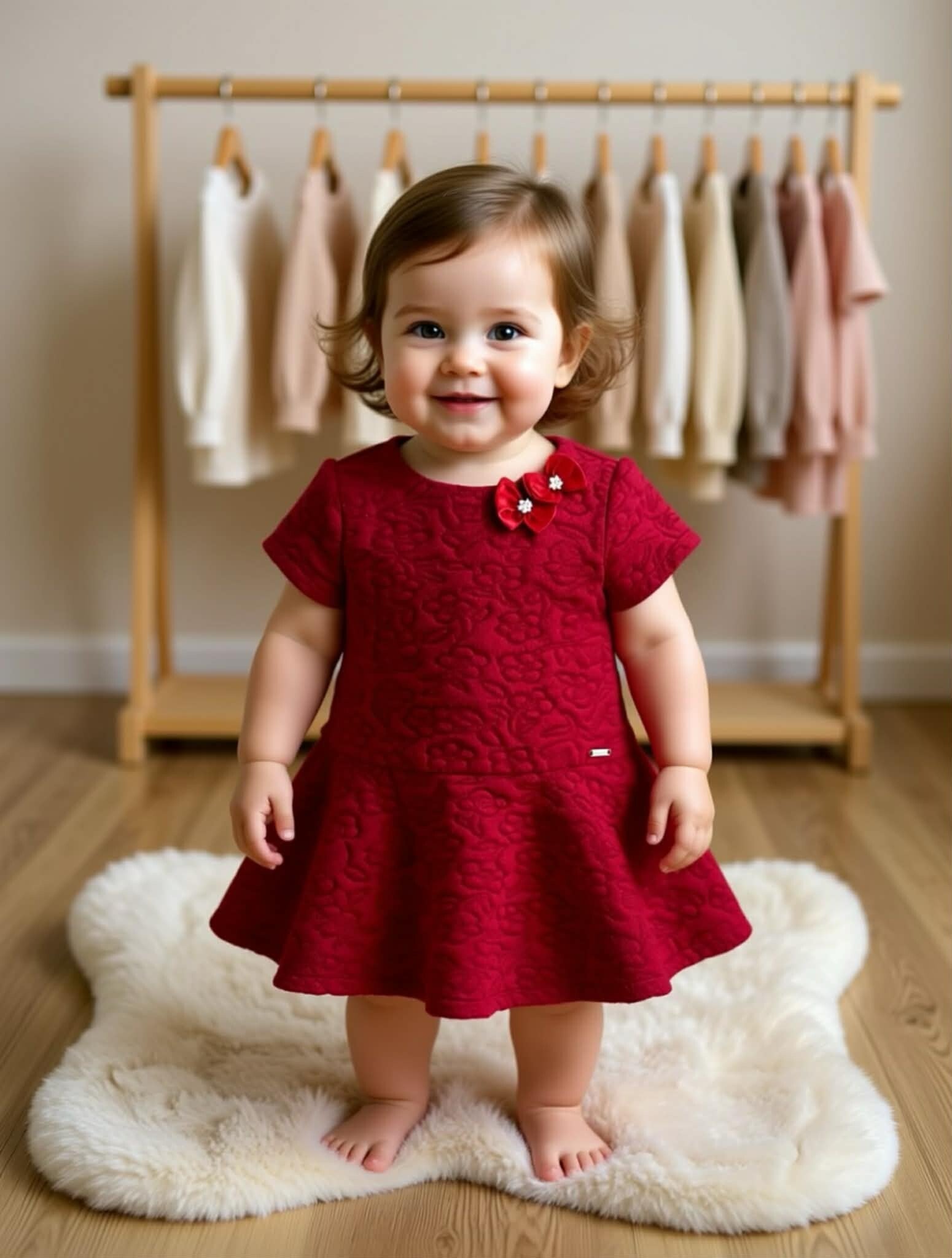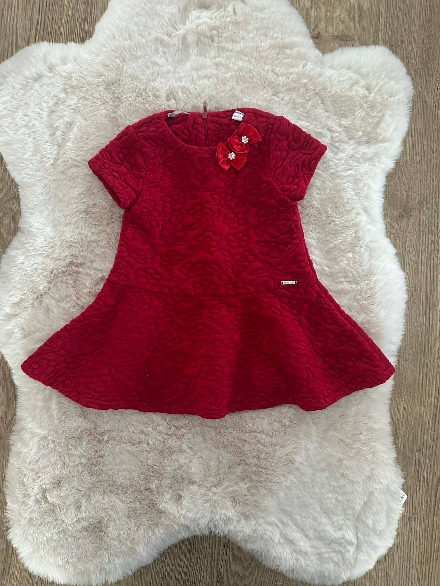 Dit jurkje is de ster van de outfit! Combineer het met een witte maillot en de klassieke Stabifoot veterschoentjes voor een traditionele look, of met de witte Mayoral laarsjes voor een extra warme winterset. Perfect voor kerstmis of een familiefeest.