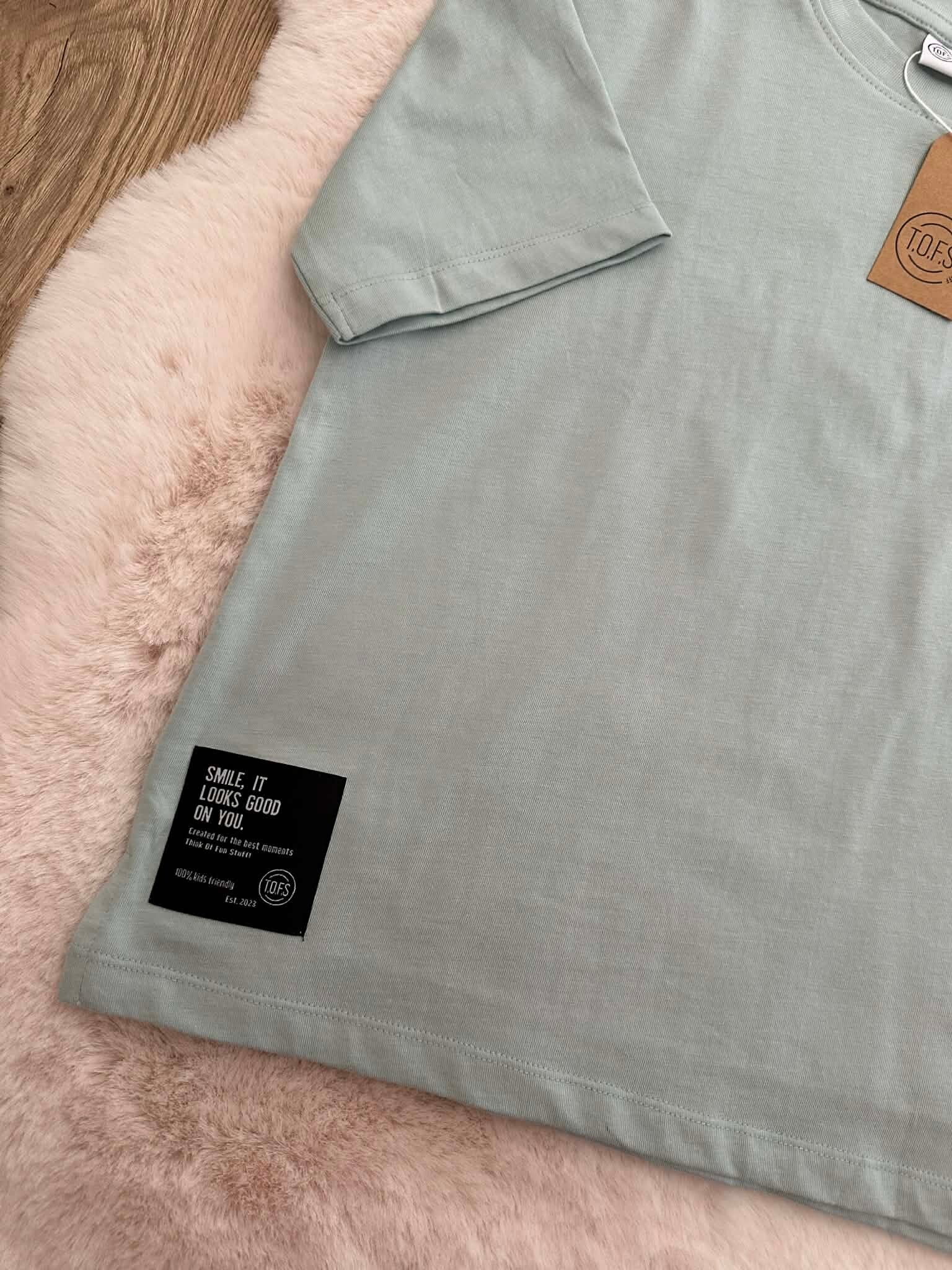 Laat je kindje stralen in dit vrolijke shirt uit onze nieuwste T.O.F.S. collectie. Dit item combineert een frisse mintgroene kleur met trendy graphics, perfect voor een stoere en eigentijdse outfit.