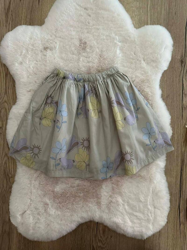 Breng de lente in de kledingkast met dit vrolijke rokje van het Belgische merk Filou & Friends. De zachte kleuren en de lieve illustraties maken dit item perfect voor een zonnige dag of een vrolijk paasontbijt.