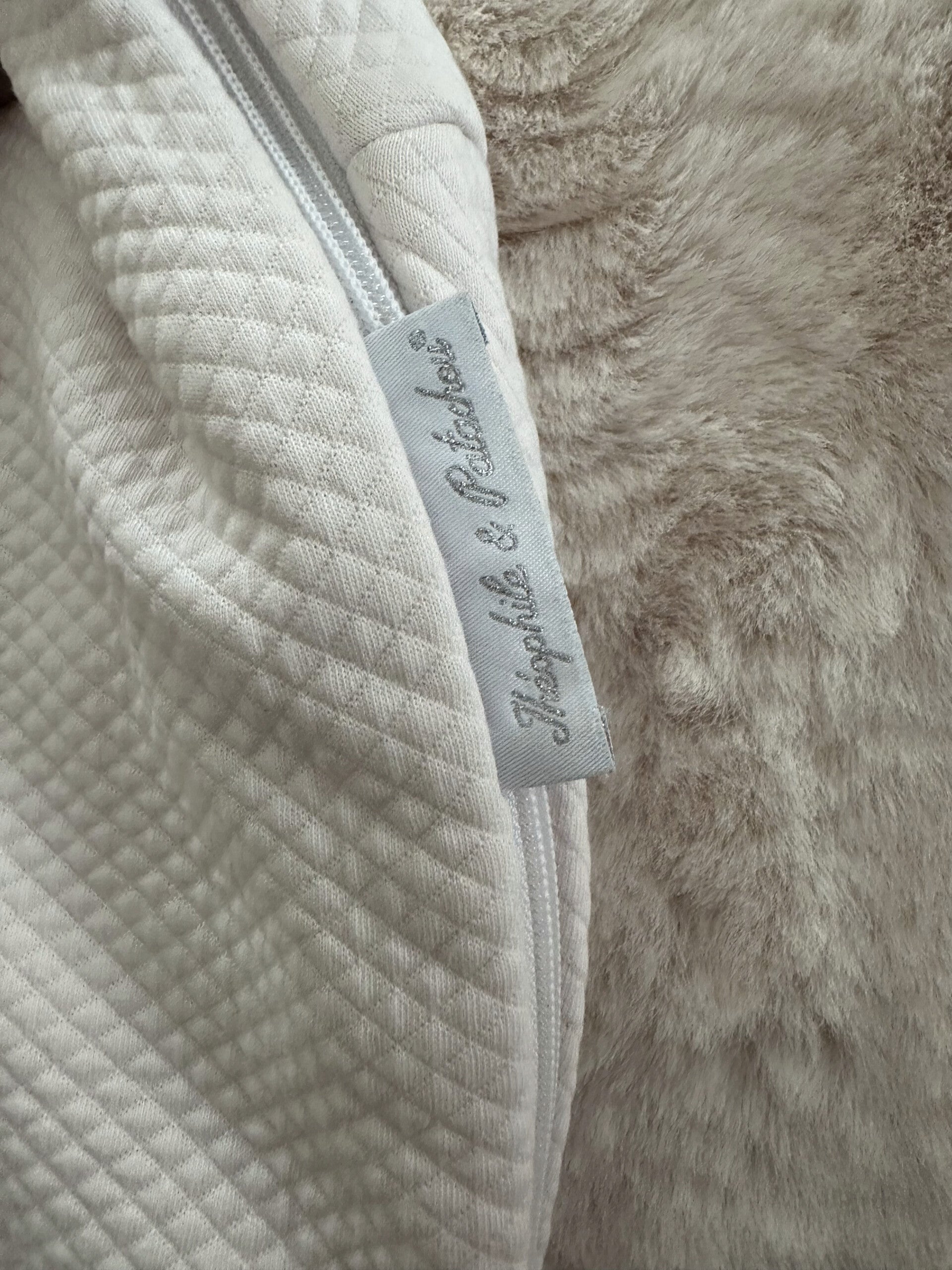 Materiaal: De buitenzijde is gemaakt van een hoogwaardige stof met een fijne wafelstructuur (quilted look). De binnenzijde is gevoerd met ultrazacht katoen voor optimaal comfort.