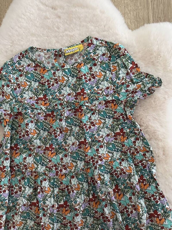Laat je meisje stralen in deze vrolijke jurk van het merk Maya. De jurk zit boordevol kleur en details, perfect voor een zomerse dag, een schoolfeestje of een vakantie. Omdat de jurk niet gedragen is, verkeert hij in absolute nieuwstaat!